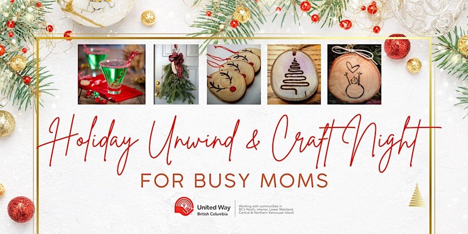 Join us for a free Holiday Unwind & Craft Night hosted by United Way BC's Hi Neighbour initiative. This event is designed for moms and grandmoms to come together for an evening of fun, relaxation and connection.