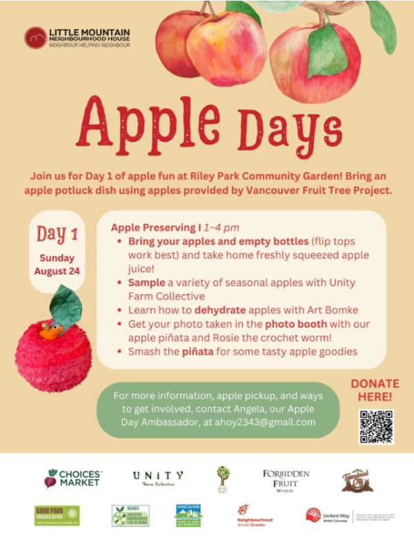We are looking for enthusiastic and energetic volunteers to help us during our Apple Days in the Riley Park Community Garden.